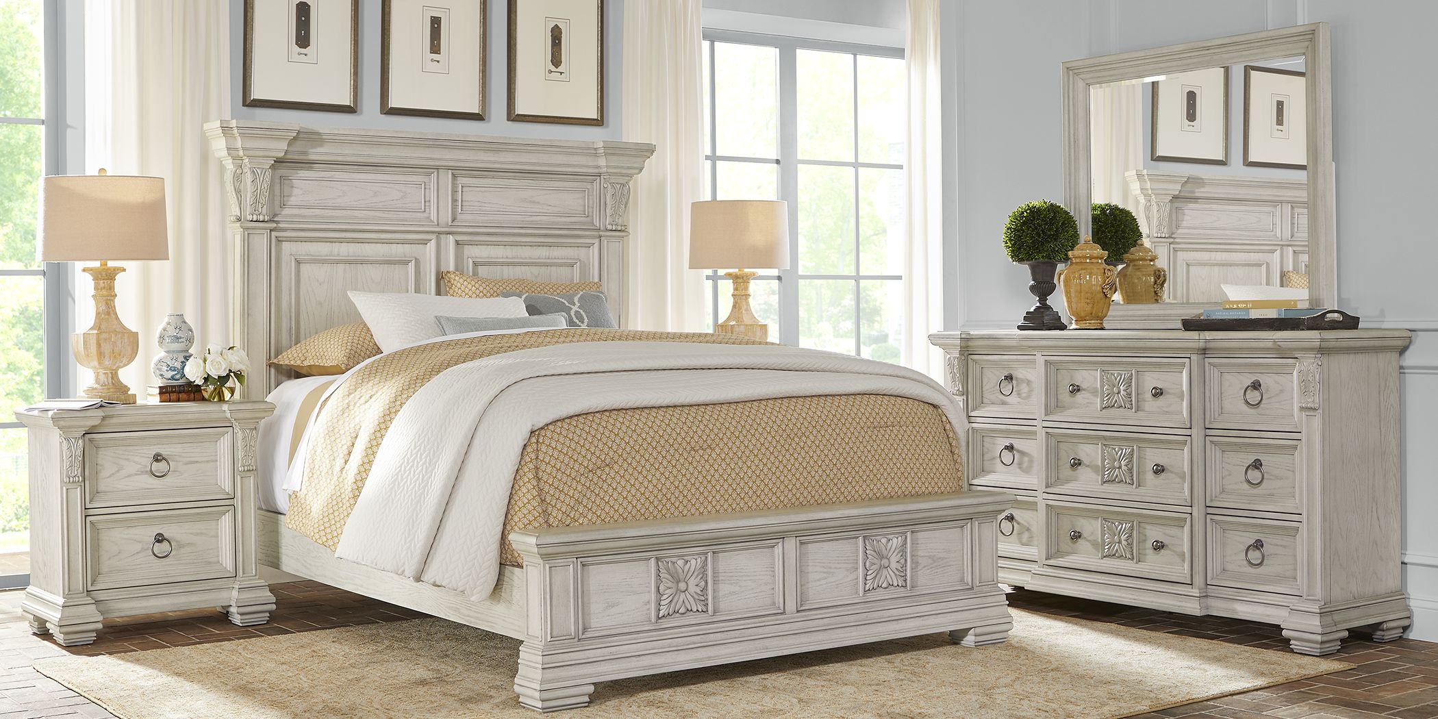 Coordinate your bedroom set with its bronze accents and a fresh white finish. Select same day delivery or drive up for easy contactless purchases. Shop the memorial day blowout. Browse our fantastic selection of bedroom room furniture sale items before they're gone! You deserve the king size bedroom set of your dreams.